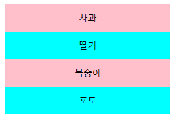 //3-3-1. 홀수 줄에는 cyan, 짝수 줄에는 pink로 배경색 넣기
